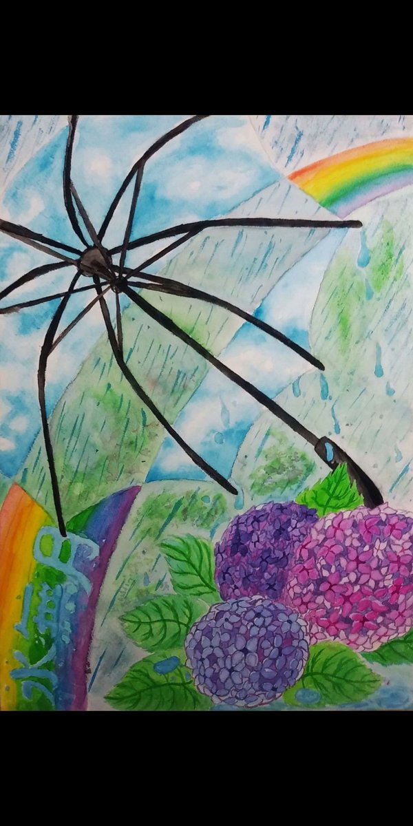 これは美術部で描いたやつ。透明水彩で水無月の風景描きました~(問題あったら消します)