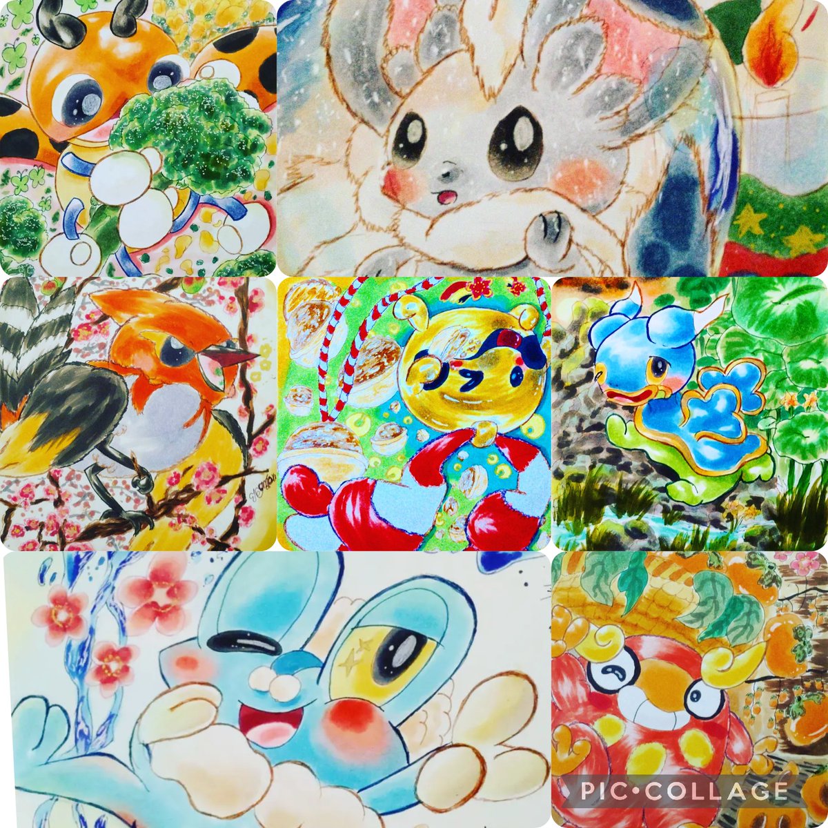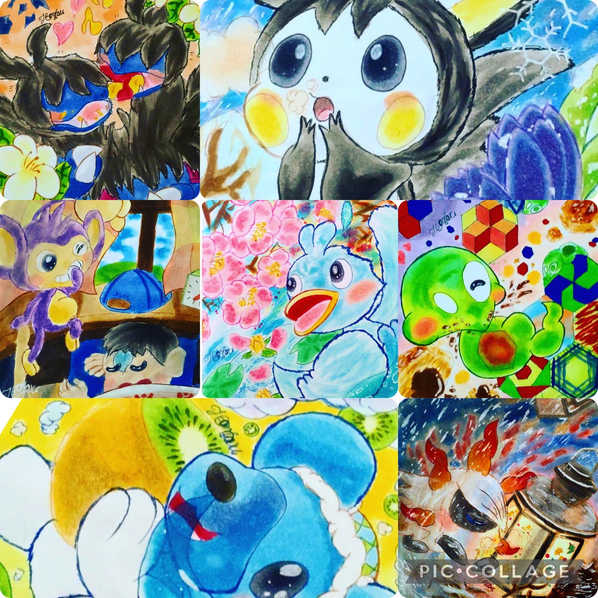 今更だけど便乗、今月描いた4枚!遅筆だけどコピックで描いてます~!反応あれば巡ります。 #ポケモン絵描きさんと繋がりたい #コピック