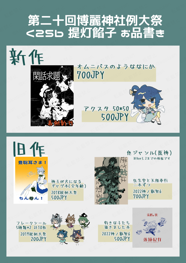 例大祭のお品書きと新刊サンプルです!!!!!!! いつかの秋例のやつも持ち込みます~ #例大祭20