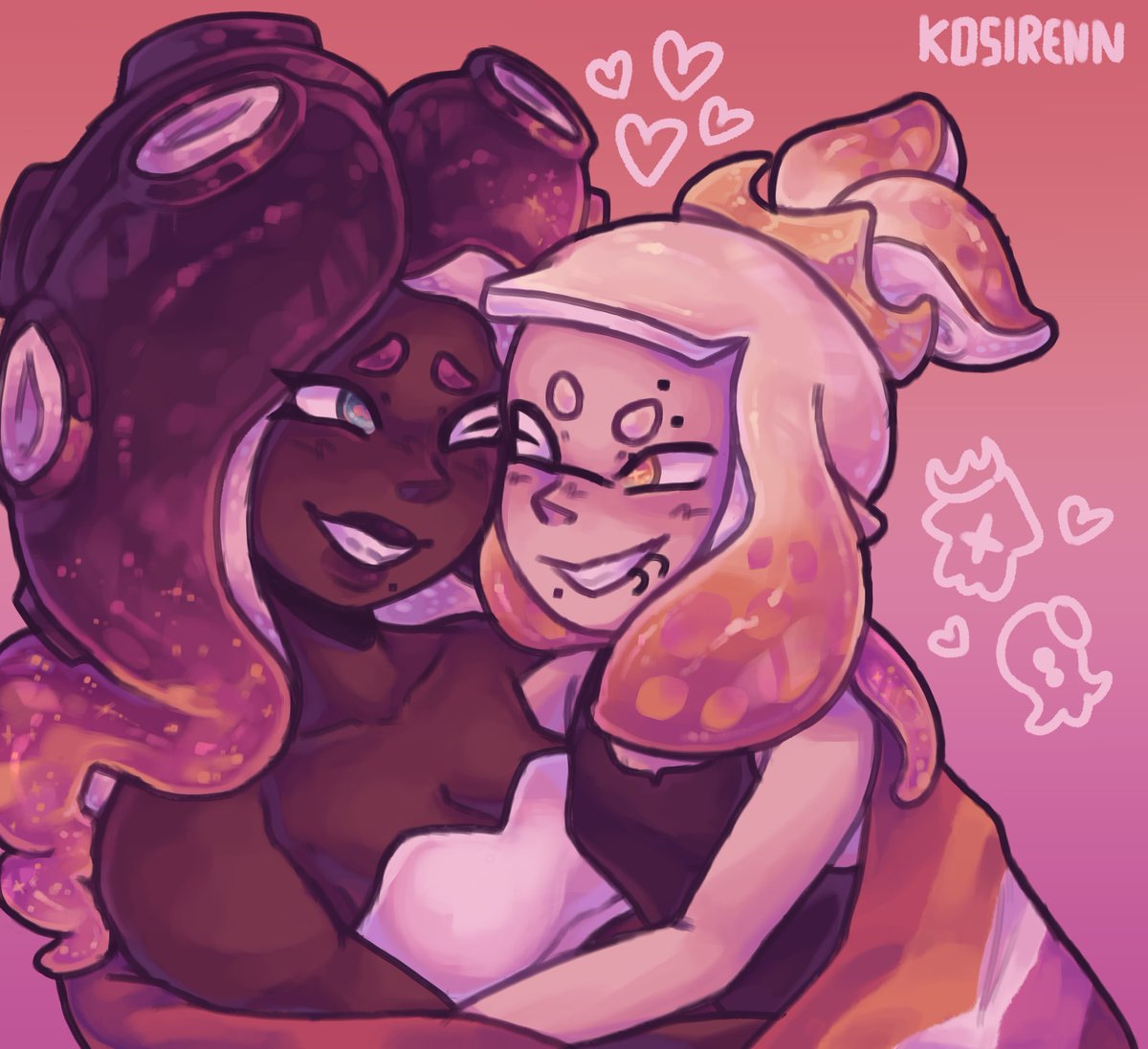 #pearlinaweek day 4: au!! pokemon has been clogging up my brain bc of scarlet/violet so i HAD to draw this… couldnt fit their whole teams in but oh well #pearlina #splatoon