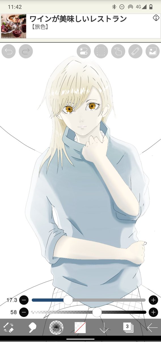 服の陰影上手くいったかな🤔でも何だろうな画風が統一感をないからかな多少違和感が…水彩ブラシとフェードがめちゃめちゃ使いやすいのわかた #イラスト #イラスト練習中 #絵描きさんフォロバ100