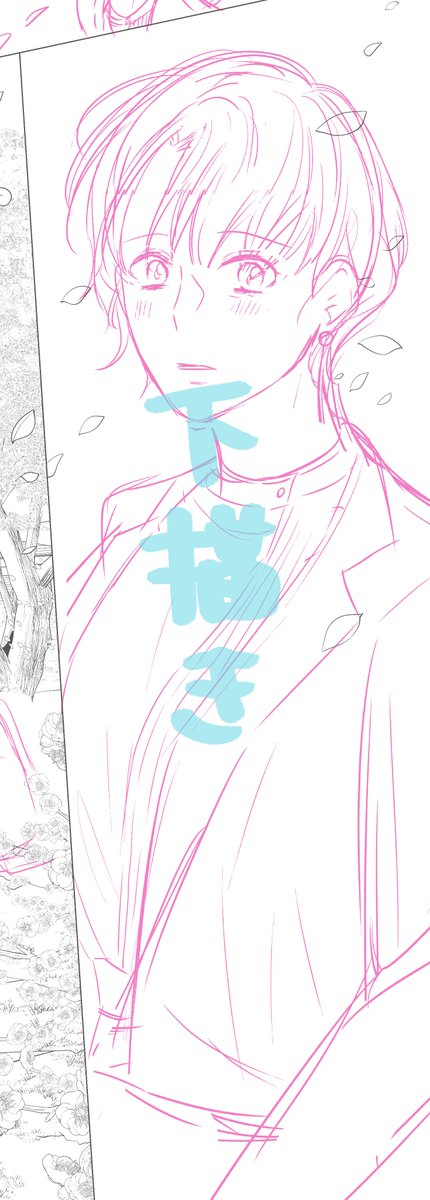 『#梅散らし、花泥棒~おとなの恋路は年下と~』の梅乃が告白するシーン作業工程です 下描きよりペン入れした時の方が、目が女性っぽくなってる気がします👏💗 本編▶mechacomic.jp/books/153489 #漫画が読めるハッシュタグ
