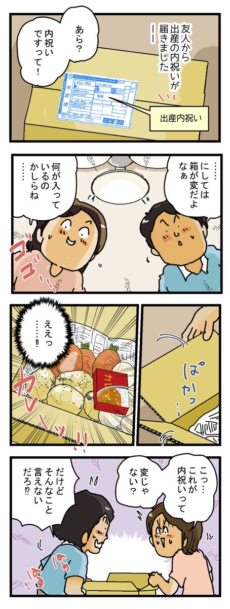 『宅配便で、ありえない出産内祝いが届いた、、』 ええっ⁉これが内祝いって、、、 #宅配便 #コミックエッセイ #リアル宅配便日記 #漫画が読めるハッシュタグ ブログはこちら↓ ameblo.jp/yukitanoyonkom…