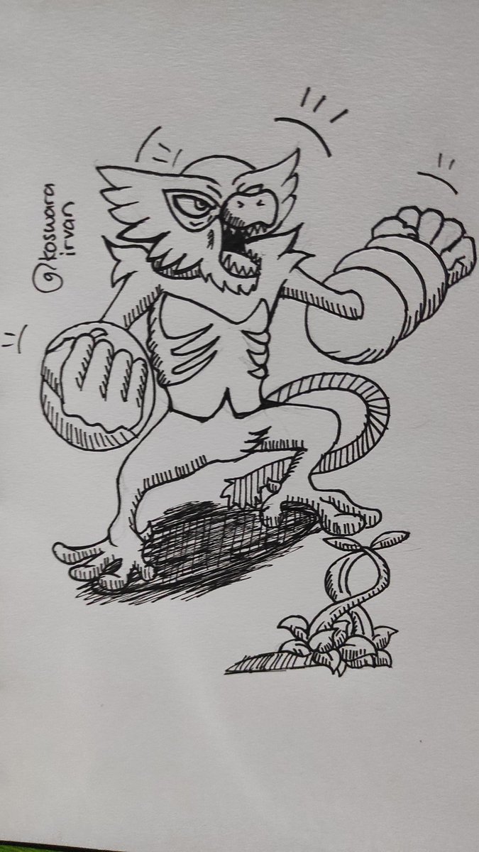 INKTOBER DAY 21 Fuzzy #352 Kecleon "It changes its shading to match its surroundings so it can sneak up on prey. Only its belly patterns stay fixed." #inktoberindonesia #inktober #inktober2021 #art #koswarairvan #pokemon #kecleon #fuzzy #ink