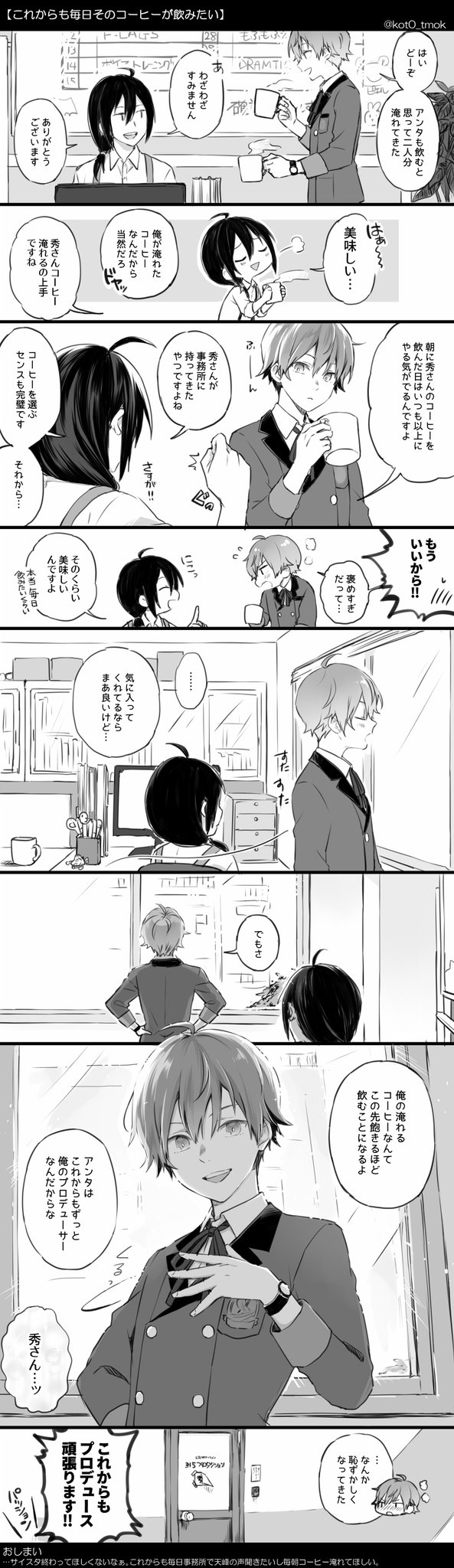 朝にコーヒーをいれてくれる天峰とP※顔有