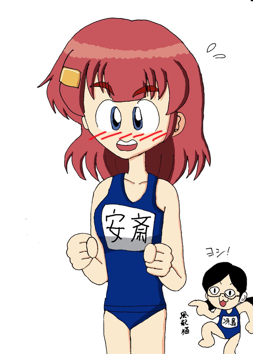 水着撮影と聞いてアイドルらしい可愛い水着だと思ったらスク水だった斎都 #くそ寒いので水着絵を貼る #安斎都