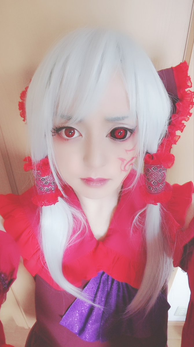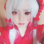 ずもせんの家でコスした!! 久々に禍霊夢できて良かった(∗ˊᵕ`∗) 取り敢えず自分の自撮りだけうp ウィッグが白いから漂白効果が… あと今気付いたけどカラコン逆だわ (:3[▓▓] #禍霊夢 #コスプレ
