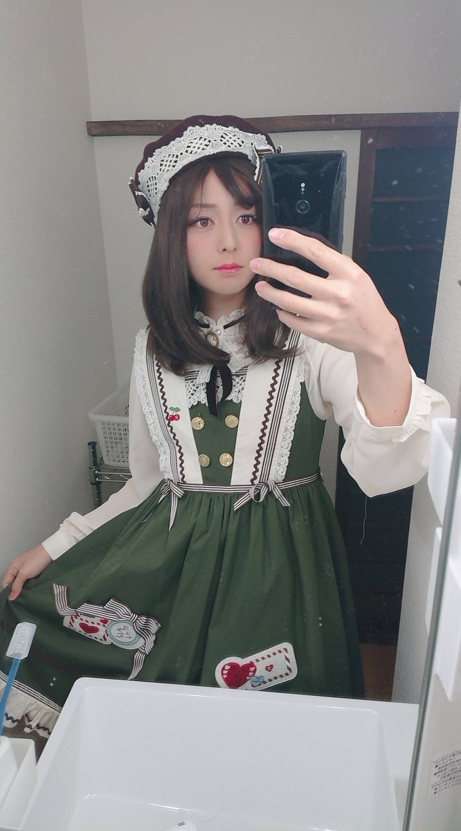 久しぶりに女装したけど、コーデに対してメイクとウィッグが合ってない感じするから要改良! そして着替えた瞬間に灯油切れでストーブ消えた。 #女装