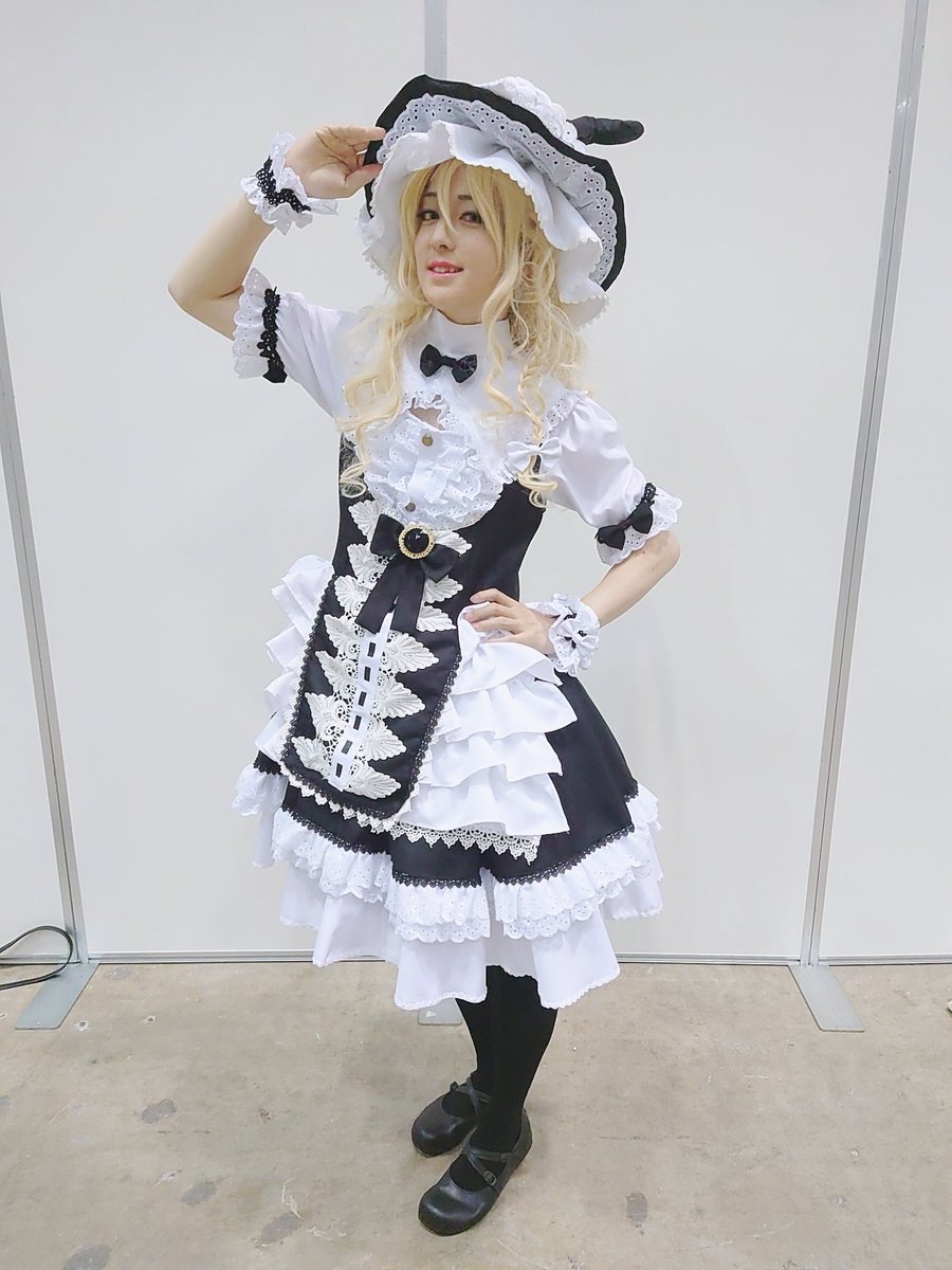 例大祭お疲れ様でした。 魔理沙つり目にしたつもりなのに全然なってない。 お会いした方、構って下さった方、ありがとうございました! 何年ぶりかのイベントぼっち参加でした! #博麗神社例大祭 #例大祭18