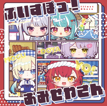 4/29のVGGC5thで頒布するおみせやさん本の表紙です! 17人全員描いたのでお手に取ってもらえると嬉しいです☺️☺️ #VGGC