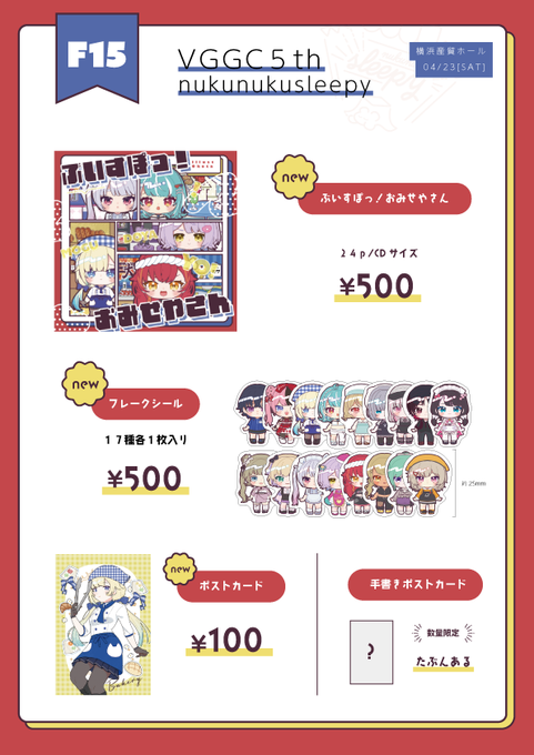 79 177 #VGGC5th [nukunukusleepy]のお品書きになります🍀 (一部未定な部分ありますが)来てくださると嬉しいです✨ 当日はペーパーも用意する予定なのでぜひ遊びに来てください~! 23/04/23 22:25
