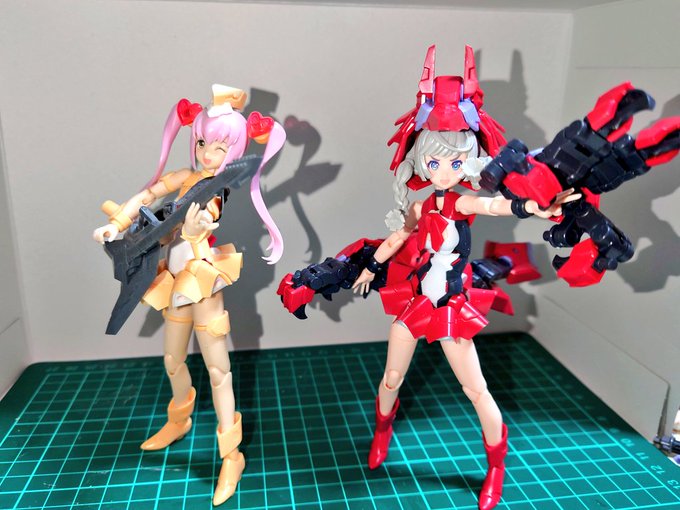 だいぶ前に作ったカオプリの先輩並べると、スカートおんなじなのはわかる #メガミデバイス