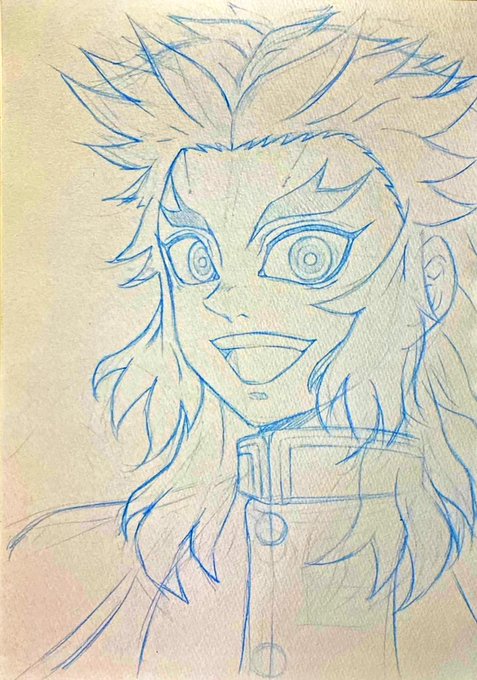 久しぶりの趣味絵。 まだ下描き。(水色の色鉛筆) 筆ペンで描こうかな。 せっかくスケブに描いたから水彩で塗ろうかな。 あとスペースに炭治郎や禰豆子でも描こうかな。 …てかなんか髪型が違うな。 #鬼滅の刃 #煉獄杏寿郎 #鬼滅の刃イラスト