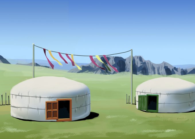3 11 #背景版深夜の真剣お絵描き60分一本勝負 お題「遊牧民の集落」 19/07/13 22:08