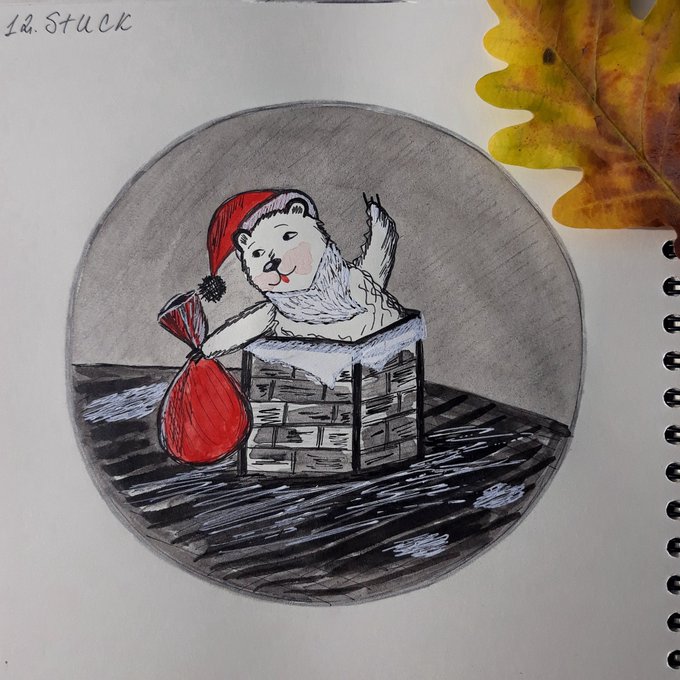 Слово Stuck-застрявший У кого-то Merry Christmas)) *второе фото телефон щёлкнул сам и мне оно нравится)) #inktober2021 #Inktober