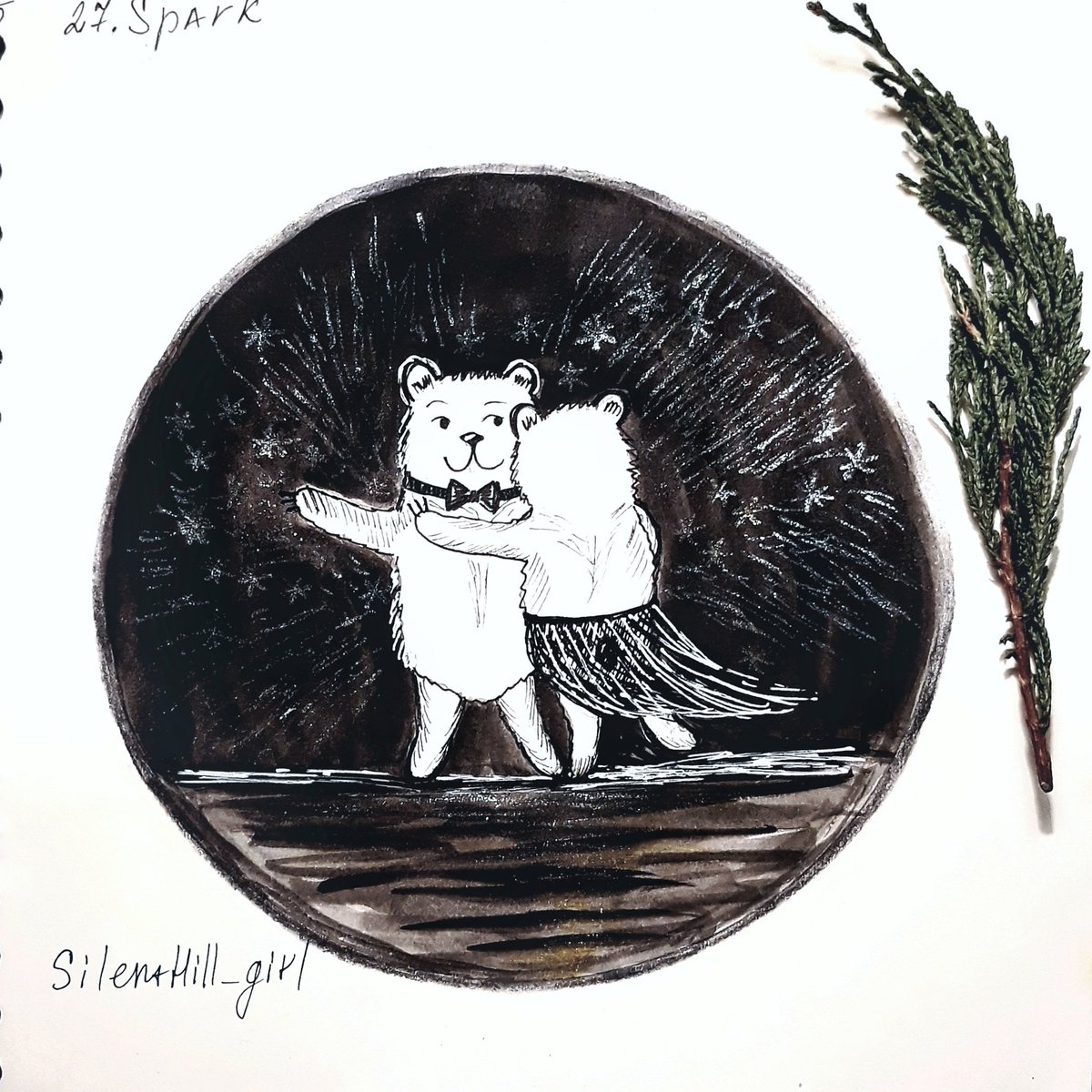 День 27 и слово Spark Когда твой партнёр по танцам ещё и твое увлечение-искры летят во все стороны💫 Вот и у Михаила Сергеевича с Надеждой случилось именно так ;) #inktober2021 #Inktober