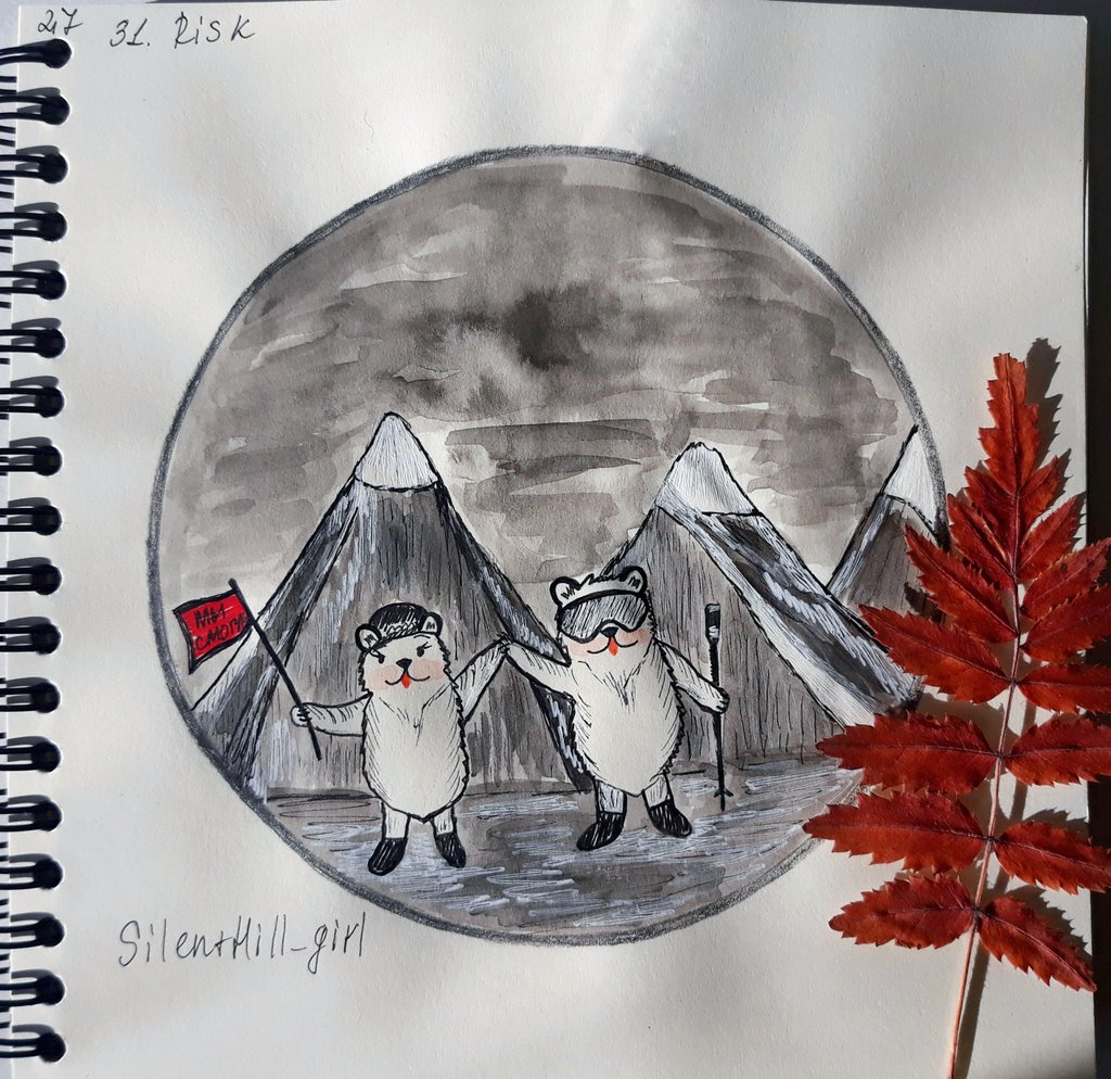 И день 31й,последний🥺 Я справилась!!! Аж не верится) Каждое восхождение-это всегда риск. Даже если кажется, что это не так. Это преодоление себя и огромное желание дойти до финиша. Бывает тяжело, но зато какой вид открывается с вершины!.. Мы смогли! #inktober2021 #Inktober