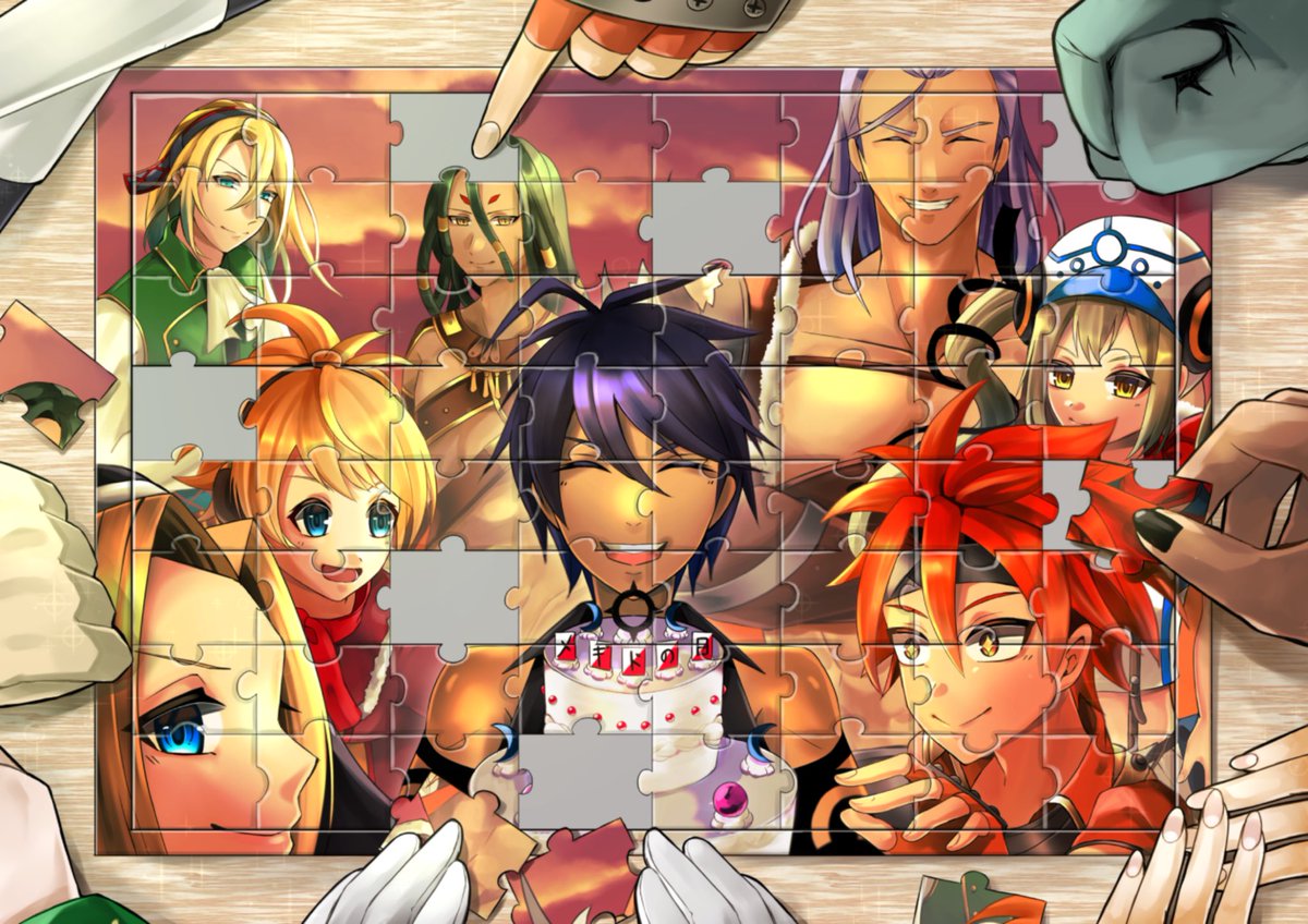 少し早いですが、祝!メギドの日!おめでとうございます!! 楽しい絵にしたいと思って、この絵が完成しました!メギドのジグソーパズルやってみたいなとか、一年早いなとか色々考えながら描いてて楽しかったです! #メギドの日展_イラスト部門