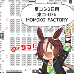 【夏コミのお知らせ】🏍️💨💨 2日目・東コ-07b MOMOKO FACTORY お品書きです!といっても持込は新刊1種のみです! ウオッカちゃんはかわいいね~っていう本です。本文サンプル→pixiv.net/artworks/10015… C100楽しみましょう!どうぞよろしくお願いします!!