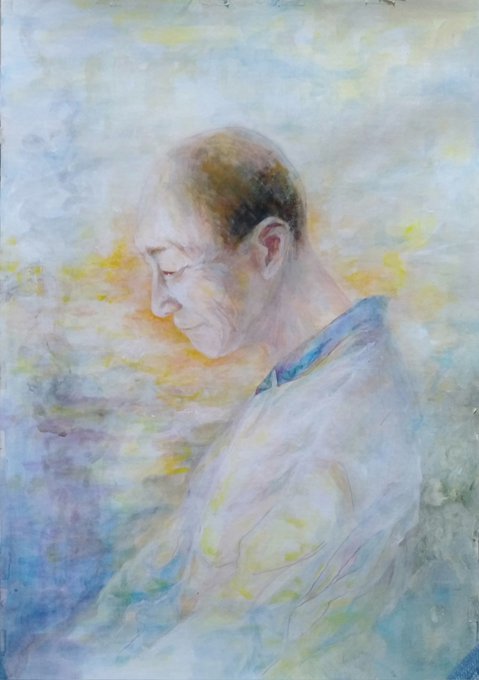 久し振りの途中経過 練習なので100円均一の厚紙を使用 下地用ジェッソの変わりに 刷毛でチタニウムホワイトを塗ってあります 全体の印象・イメージを目標に一生懸命描いています😂 #絵描きさんと繋がりたい #絵柄好みって人にフォローされたい #art #アナログ絵 #アクリル #途中経過