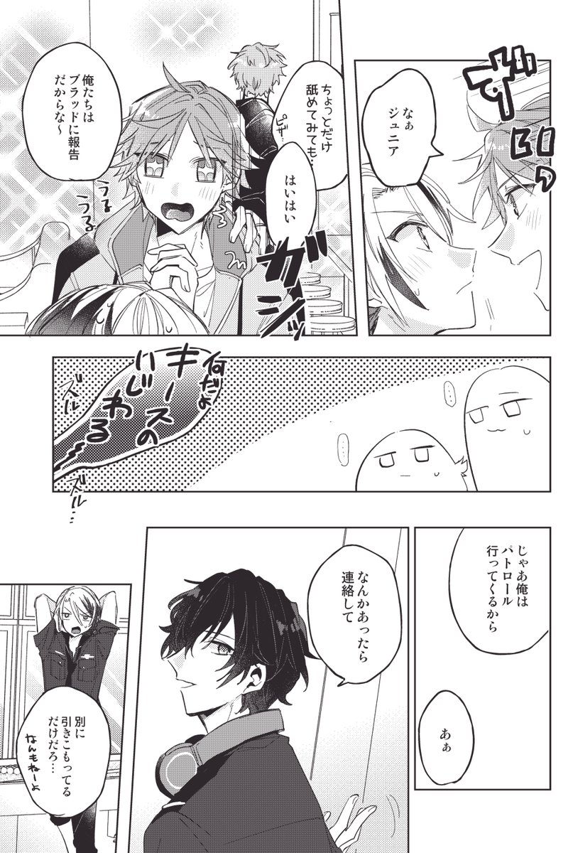 6/25あまい雷鳴 新刊サンプル | ちう pixiv.net/artworks/10925… フェイジュニの新刊サンプル上げました! 🎸がサブスタンスの影響で身体の表面が(舐めた人が)一番好きなものの味がする様になってしまうごつサブです。付き合ってません(強調) 通販はページできたらリプ欄に貼ります🙆♀️ 【1/3】