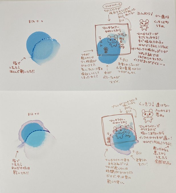 コピックのモニター用紙を使ってみたよ! 1枚目:上ふんわり 下くっきり 2枚目:ふんわり 3枚目:くっきり インクの吸い込み具合が正反対な性質の紙で、混ざり合って出来る色も全く違うので面白かったです😊✨✨ #コピック #コピックモニター #アルコールインクアート