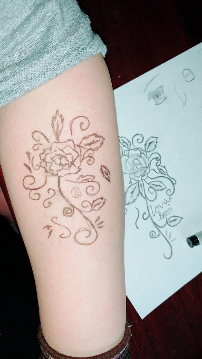 目の前にキャンバス(腕)があったので落書きしました😅 マルチライナーもマッキーも皮膚に描くものじゃないので肌荒れします。良い子は真似しないように!!(子持ち主婦がこんな事して遊んでる時点で説得力ないなぁ) #私の絵柄が好みって人にフォローされたい #絵描きさんと繋がりたい