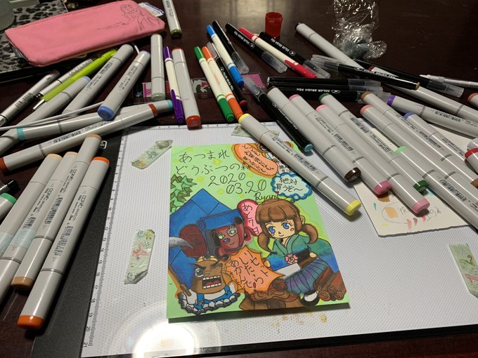 リビング大惨事じゃ🤣 このコピックの置き方したら塗りたい色見つけれない😅 #絵描きさんと繋がりたい #私の絵柄が好みって人にフォローされたい #私の絵が好みって人にフォローされたい #私の絵が好きそうなフォロワーさんにrtして届けておくれ絵 #あつ森