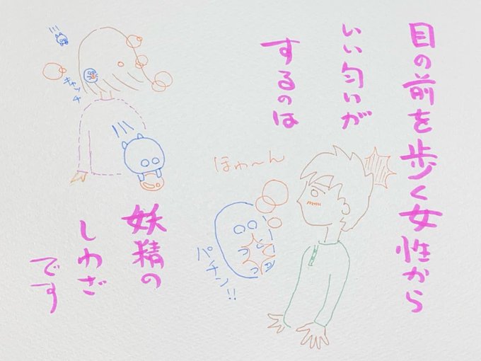 目の前を歩く女性から いい匂いがしたら 妖精のしわざ → 香り玉 髪の毛で遊ぶ 香り玉をつかまえた 妖精のいたずら 男子の心もつかまえる #香り #匂い #詩 #妖精 #詩が好きな人と繋がりたい #イラスト #イラストグラム #詩が好きな人と繋がりたい #イラストすきな人と繋がりたい