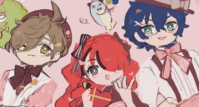 バレンタインデーぴーぴーえむ💚❤️💙 ⚠︎服装捏造 #絵バンス #レインの依頼書 #まめねことレオス