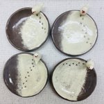 いつもは文鳥で作っている「あしあとの豆皿」と「お花の豆皿」をひよこで作ってみましたよ🐤🐤👣👣💨 #ひよこ展