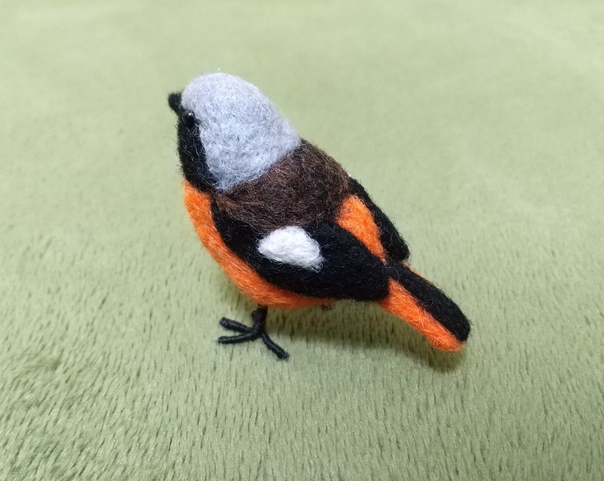 ちびジョビさん おおよそ実物の半分のサイズで作製。羊毛フェルトは作り始めたら一気に作り上げたいから、何時間もサクサクやっていたりする。するともれなく首と肩が痛い😣 でも、分割して作ると感覚がわからなくなって、バランスがおかしくなったりしてしまう。 #羊毛フェルト #ジョウビタキ