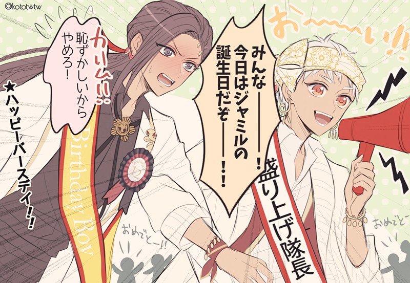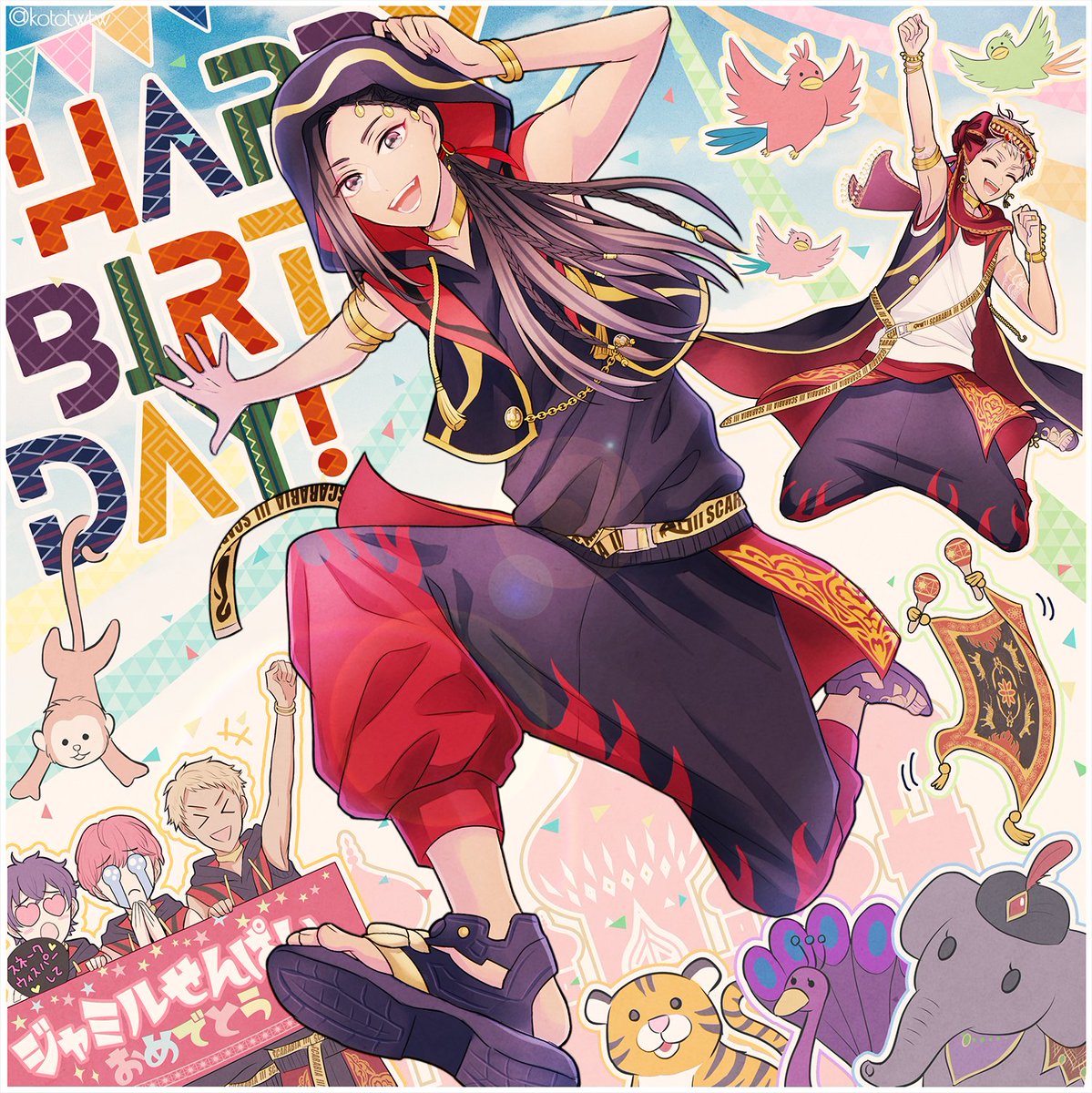 ジャミルくんお誕生日おめでとう!!🥳🎊いつもお疲れさま!今日は主役としてハッピーな一日を過ごせますように!!🤸♂🤸♂ #自由に踊れジャミル・バイパー誕生の宴2020 #ジャミル・バイパー誕生祭2020 #ツイステファンアート