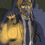 めっちゃノリで描いたので、状況がカオスな落書き (スーツにランタン?どこそこ?鬼????) #イラスト #落書き