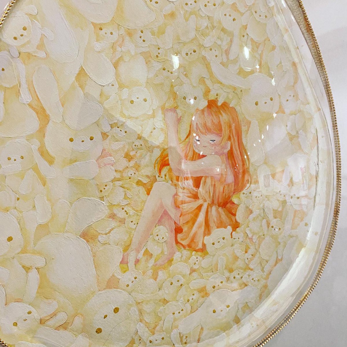 title:しあわせだ、と思い込む。 去年アクリル絵の具で描いていた作品、めちゃくちゃ可愛いので載せさせてください🐣卵作るの大変でした🥚 #アナログ絵 #イラスト #illustration