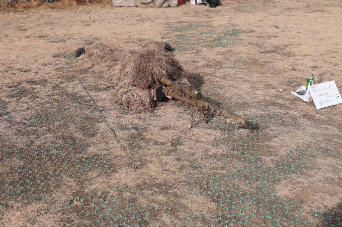 106 315 C101コミケ コスプレ 東ホールのわずかな芝生エリアでカモフラしてる 現地迷彩の人 @NOKcos さん #C101コスプレ #現地迷彩 22/12/30 12:50