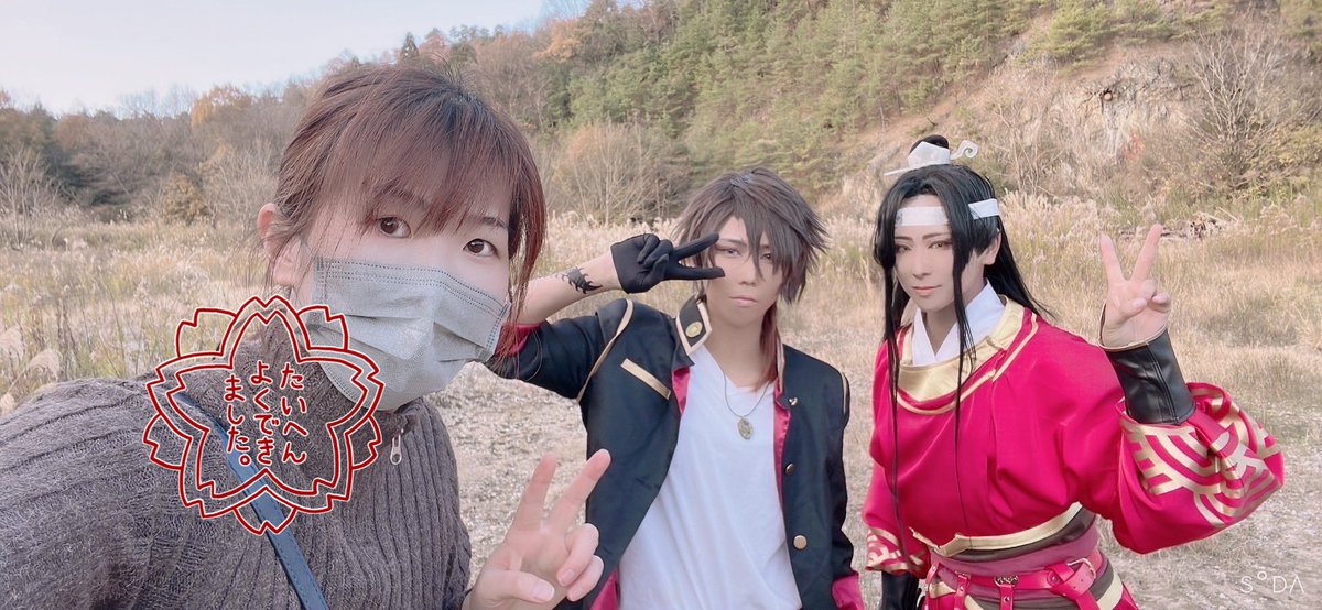 昨日のお二人との写メ。乗馬撮影楽しかった! 牧場スタッフの方々、色々とありがとうございました!! #コスプレ乗馬会in彦根オープンセット2022