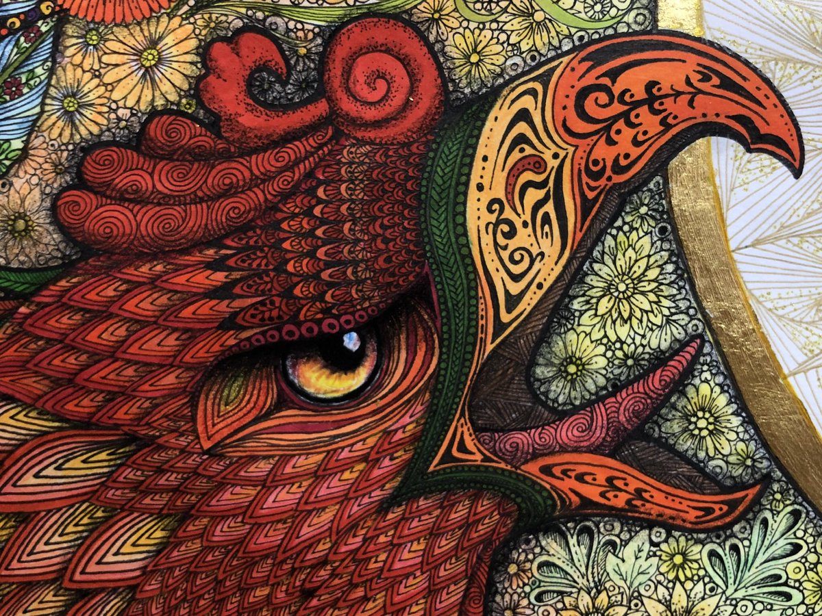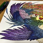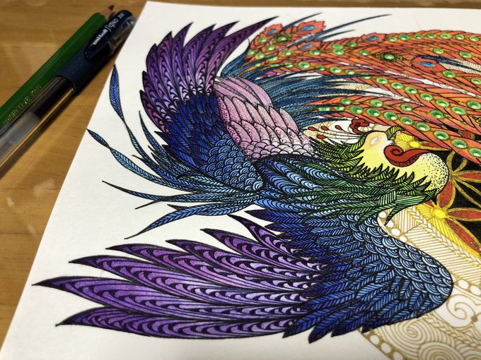 #どうか私達をお守りください 今描いている鳳凰の一部。世界中で多くの人々が尊い命を落としている。私たちは今たくさんの涙に守られてこうして生きていられる #コロナ #絵描きの輪 #絵描きさんと繋がりたい #アナログ絵描きさんと繋がりたい #芸術同盟 #絵描き仲間募集 #フォロバします