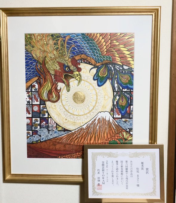 優秀賞頂きました。感謝! 国際公募 第6回躍動する現代作家展 (国立新美術館)「優秀賞」受賞 【純金箔押し細密画曼荼羅アート Phoenix】 #絵描きの輪 #絵描きさんと繋がりたい #アナログ絵描きさんと繋がりたい #芸術同盟 #絵描き仲間募集 #フォロバします