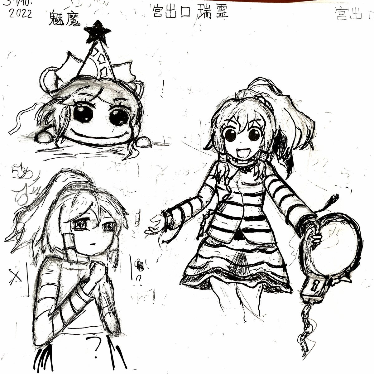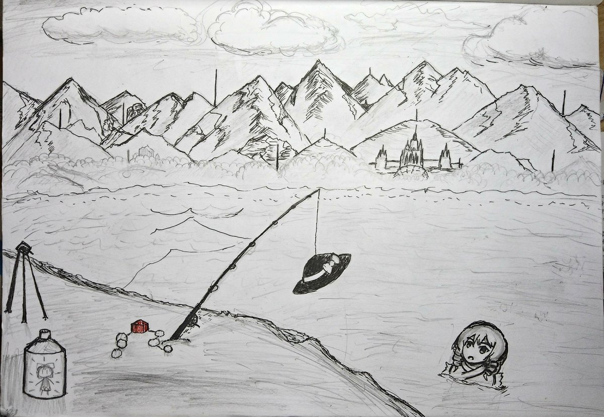 Fishing again. #東方Project #深夜の真剣お絵描き60分一本勝負 (epic fail, actual time: 3 hours 52 minutes) #5月14日はこいしの日 #5月15日は美鈴の日 #5月15日は雷鼓の日