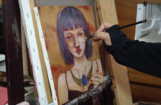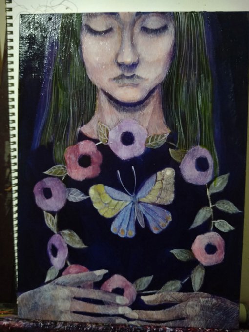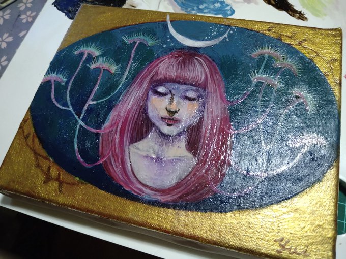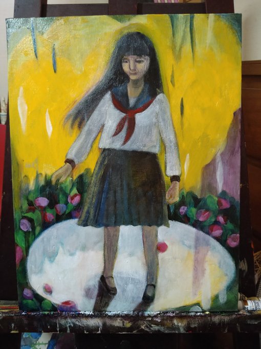 こちらの作品、 高円寺のギャラリーポルトリブレ デ・ノーヴォ様にて展示中です。 サイズはサムホールです。 #油絵 #art #私の絵柄が好みって人にフォローされたい #私の絵柄が性癖に刺さる人に届いてほしい