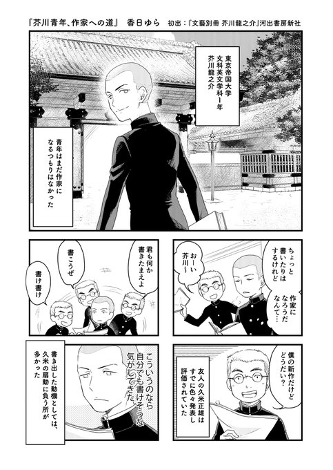 『JK漱石』7話が公開されました🐈⬛ 女子高生をしている漱石こと朝日奈さんですが、高校1年といえば…そう!芥川龍之介『羅生門』です! どうぞよろしくお願いします✨ 芥川くーん!!!! comic-walker.com/contents/detai…