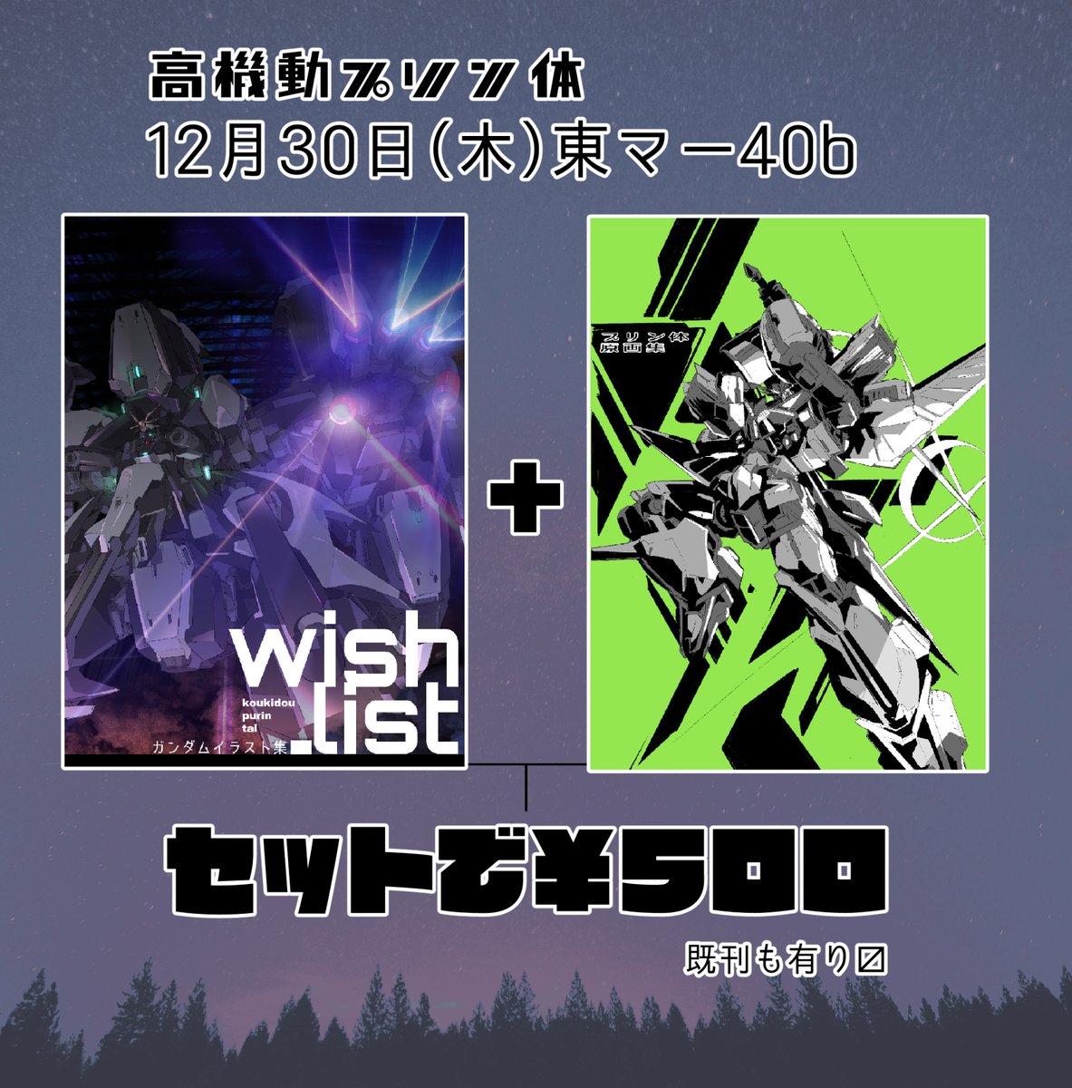 今週の冬コミのお品書きです。 新刊、イラスト本と原画集のセットで500円になります。 よろしくお願いします。