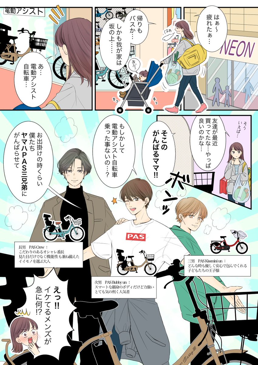 電動アシスト自転車のPR描かせていただきました(^^) がんばるママに届いたら嬉しいです! #ヤマハPAS #がんばらなくていい自転車 #子乗せ電動アシスト自転車 #PR URL(yamaha-motor.co.jp/pas/children/?…)