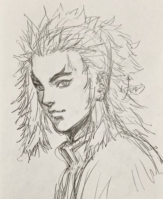 3〜4週間前に病み上がり新年一発目の原稿描き初め前にウォーミングアップで描いてた煉獄さんラフです。 節分だしどうせならと。 髪が大人しい。 あともう一枚別キャラを描いていたのですがそれはまたの機会に。