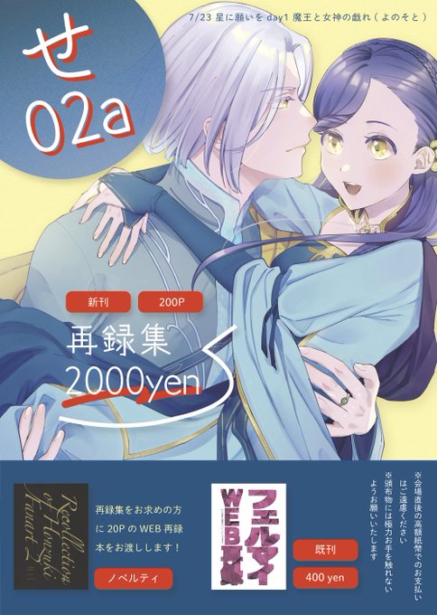 【7/23新刊サンプル①】 星に願いをday1(魔王と女神の戯れ)で発行予定のフェルマイ再録集です A5/200P(描き下ろし17P)/特殊加工いろいろ 会場頒価2000円 会場限定ノベルティがあるはず! 通販▶melonbooks.co.jp/fromagee/detai…