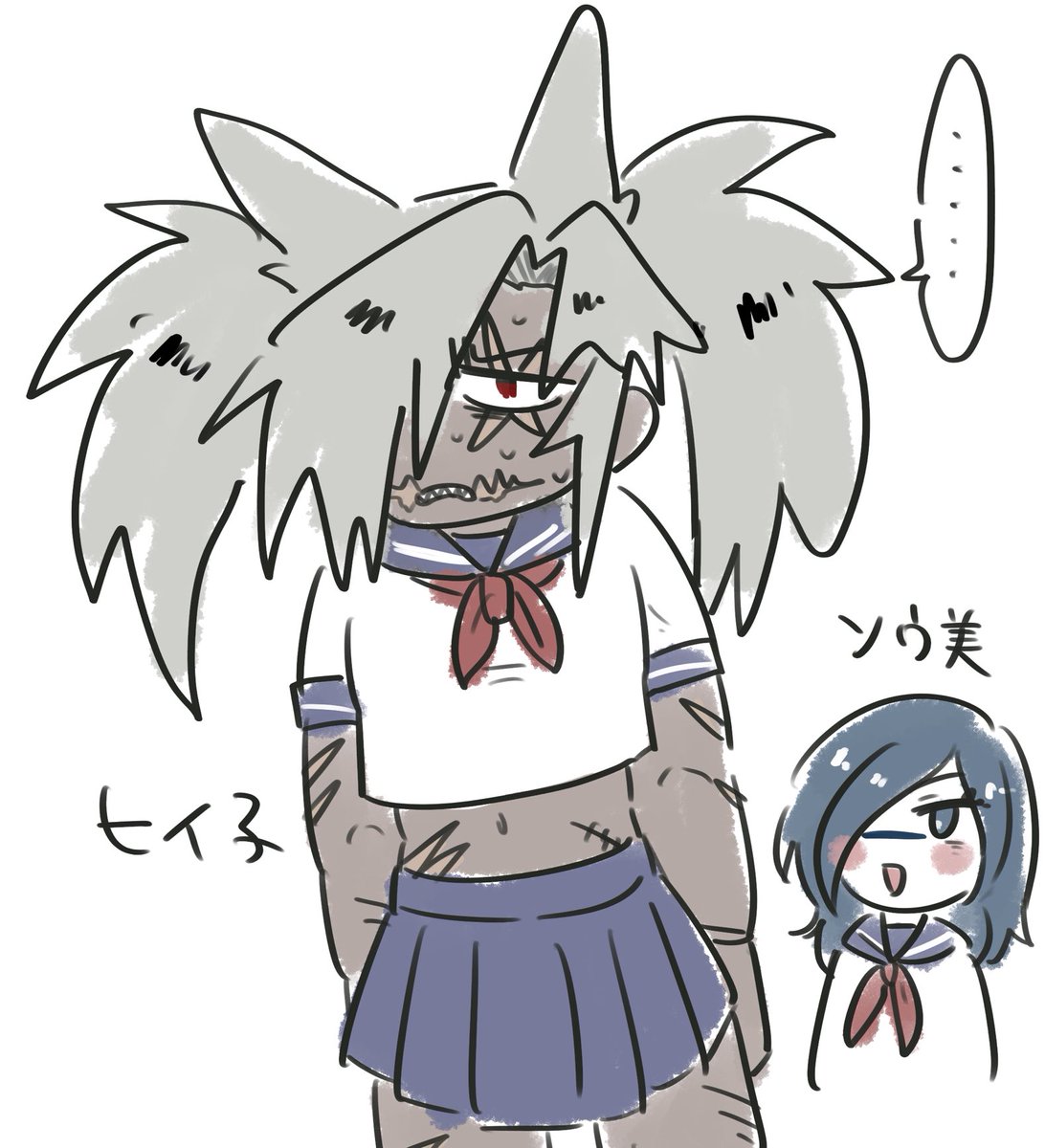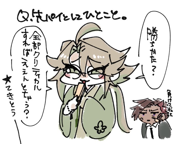 ろまごじ❌げんみ 同卓⭕️ あのとき多分こういう顔してたよってらくがき。六角屋旭って、こう - poipiku.com/86823/9216949.…