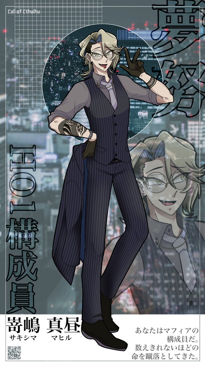 5 17 COCシナリオ「K県警K課」HO1法螺吹き 口虚 正直(くちうろ ただなお)37ちゃい!! 正直者です!!!!!!!!!! 立ち絵間に合ってないのでなんかそれっぽいの描きました!明日から!! 23/08/20 21:16