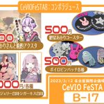 【B-17】 3/12㈰に名古屋白鳥ホールで行われる「CeVIOFeSTA 8」のお品書きになります! 新作はゆかりさんと晩酌できるアクリルスタンド! 委託で豪華メンバーによるシガーキス合同とランジュリー合同も頒布します!! 当日はよろしくお願いしますー! 【お品書き】 #ソウサミ #チェビフェス