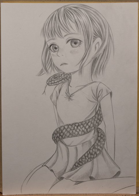 0 4 「ヘビと女の子」 #イラスト #絵 #アナログイラスト #蛇 22/08/22 23:01